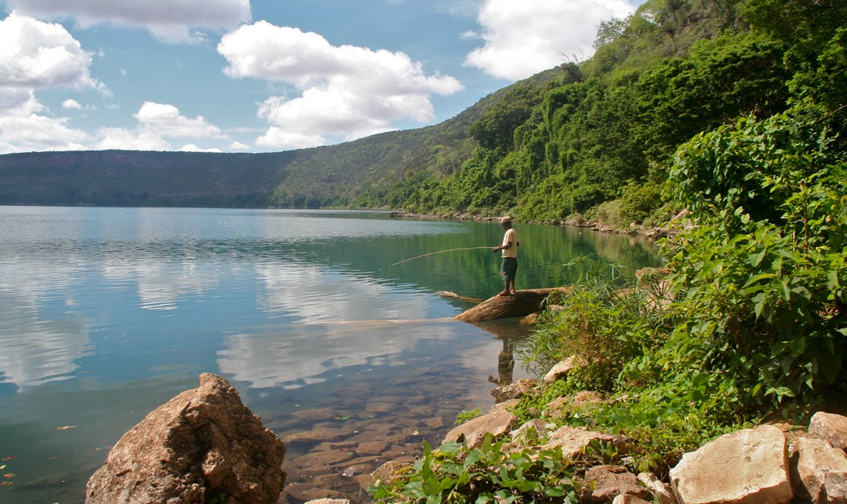 A crater lake in a caldera at the border between Tanzania and Kenya and not far from Moshi town, Lake Chala is said to be the deepest inland water body in Africa with a depth of about 3km.  Filled and drained by underground streams, the lake ranges in colour from deep blue to turquoise and green.  Take a walk down the 100m deep crater rim to the lake shore and cool your feet at the water's edge among the rocks as you watch the water ripple peacefully through the lake in shimmering delight.  Hike back up and take a walk around the Lake Chala Reserve looking out for the monkeys, baboons and birds.